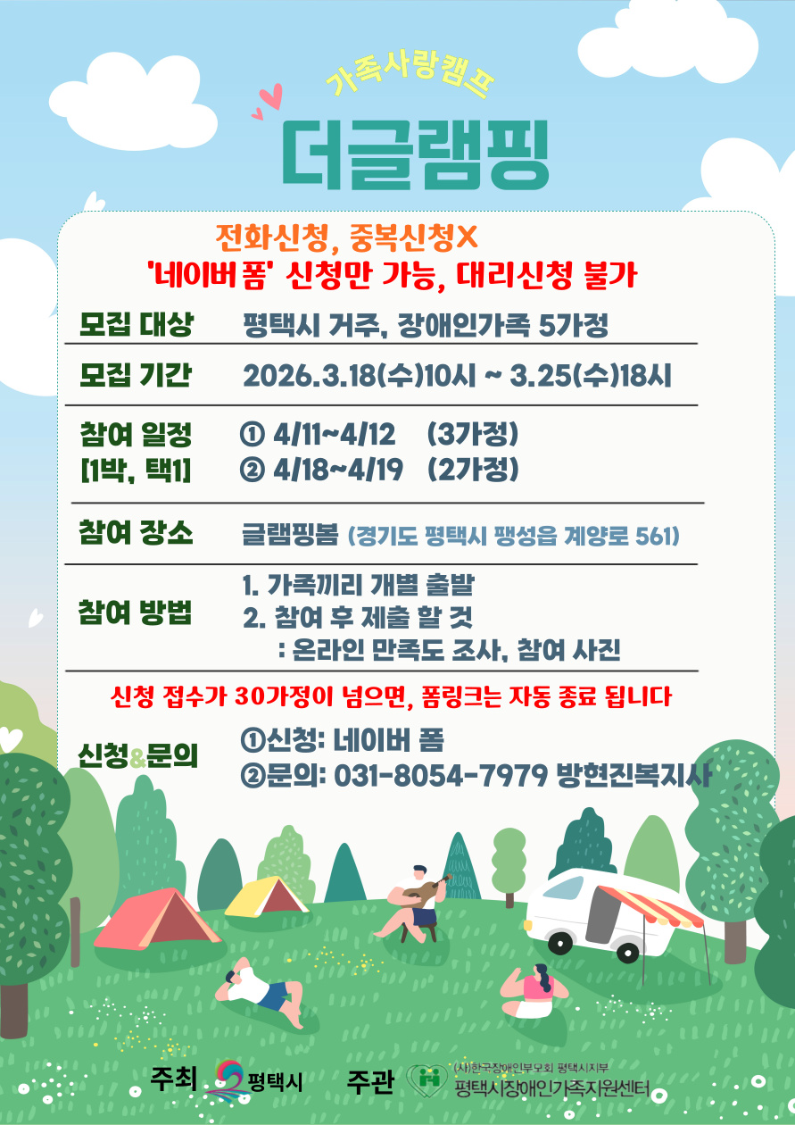 평택시 거주, 장애인 가족 20명(신규+기존)