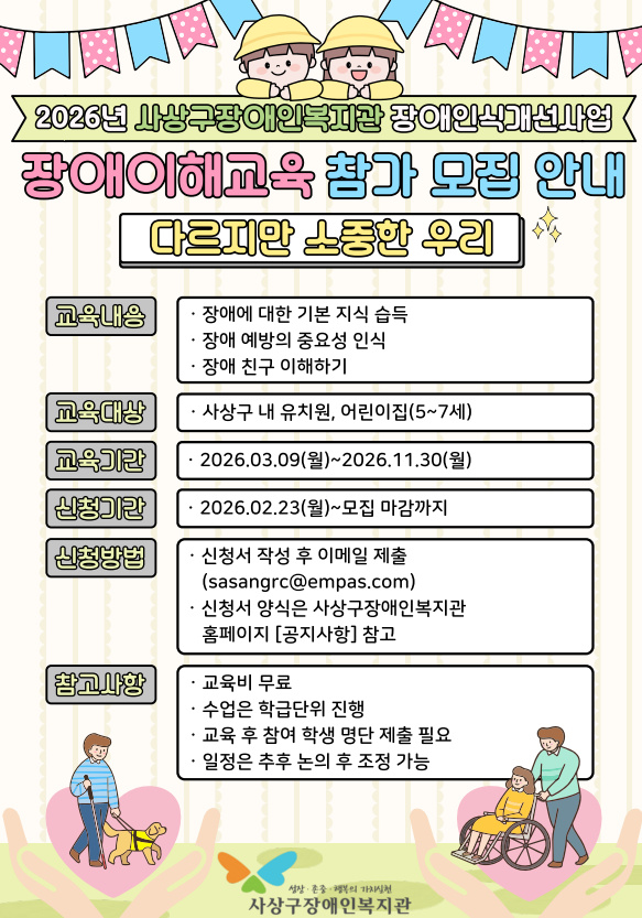 '다르지만 소중한 우리' 장애 이해 교육 참가 모집