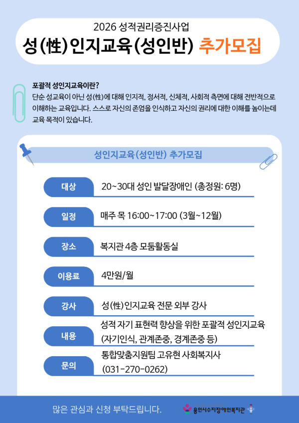 2026년 성인 프로그램 참여자 및 대기자 추가 모집