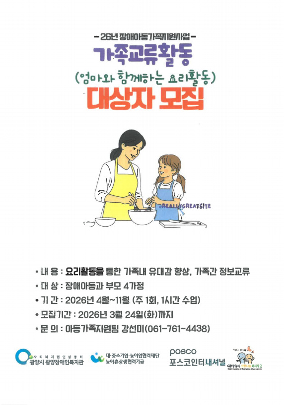 광양시 관내 어린이집과 유치원 6~7세 유아(회당 20명 내외)