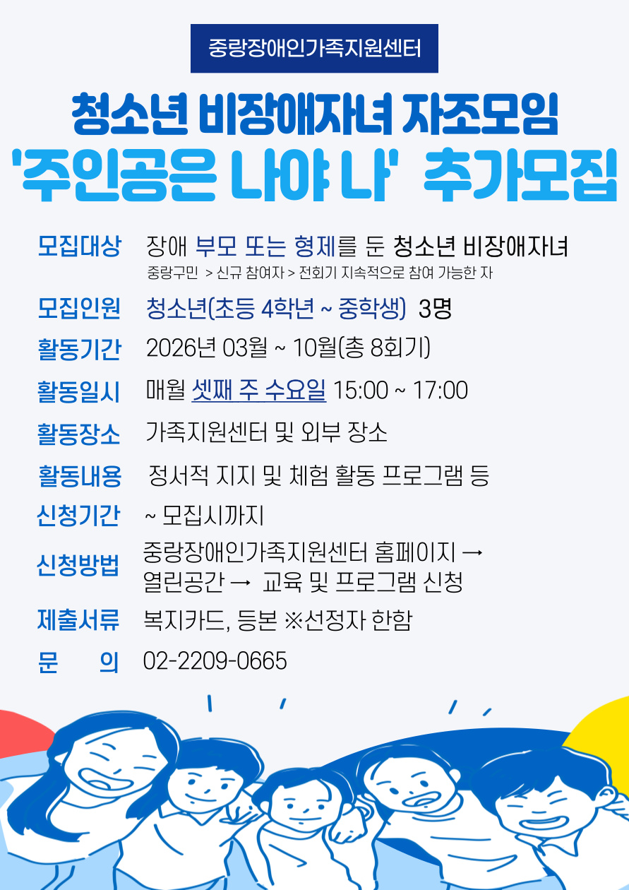 청소년 비장애자녀 자조모임 추가모집