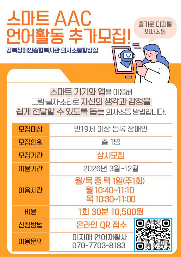 스마트 기기와 앱을 이용해 그림·글자·소리로 자신의 생각과 감정을 쉽게 전달할 수 있도록 돕는 활동 이용자 모집