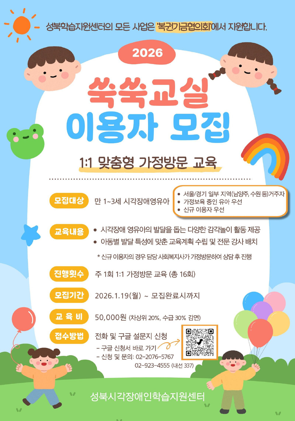 *프로그램 내용: 시각장애 영·유아의 발달을 돕는 다양한 감각 놀이 활동 제공 - 아동별 발달 특성에 맞춘 교육계획 수립 및 전문 강사 배치
