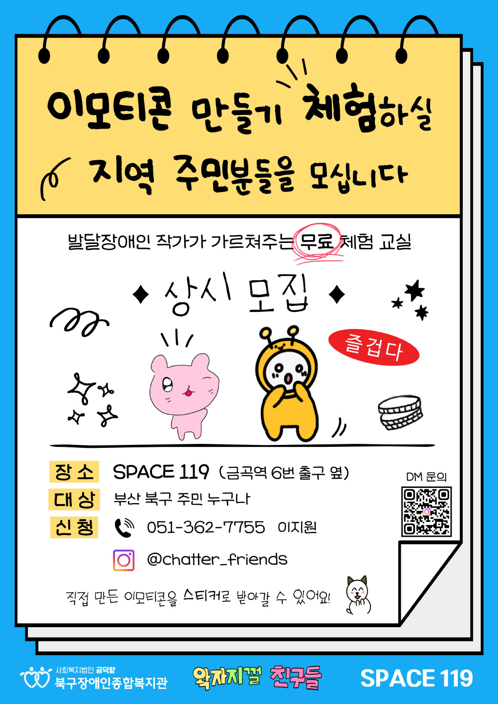 이모티콘 만들기 체험교실에 참여할 지역주민 모집합니다