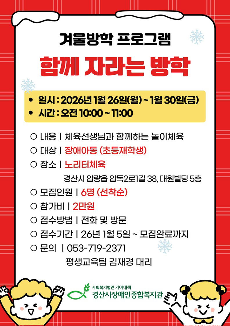 복지관에서 장애아동을 대상으로 신나는 놀이체육 프로그램