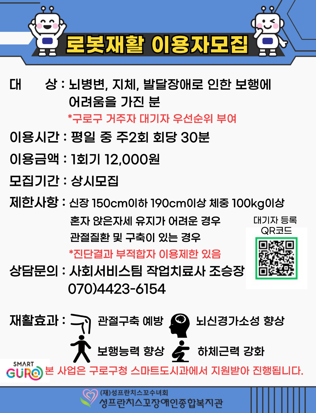 작업치료: 신체적 기능이 저하되어 작업치료가 필요한 자(전연령) / 감각통합치료: 감각조절능력, 실행능력에 어려움이 있는 만13세 미만 아동