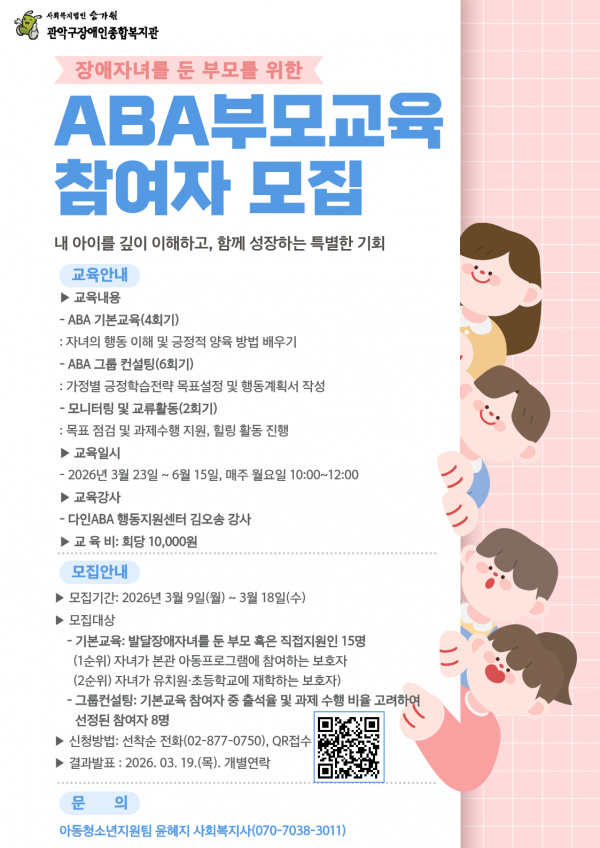 2026년 부모교육(ABA) 참여자를 모집합니다!