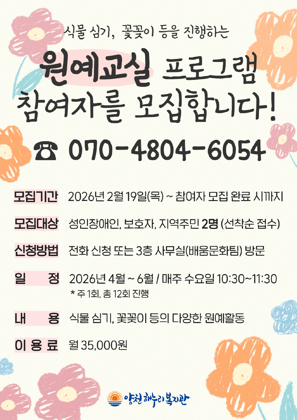 원예교실 참여자 모집