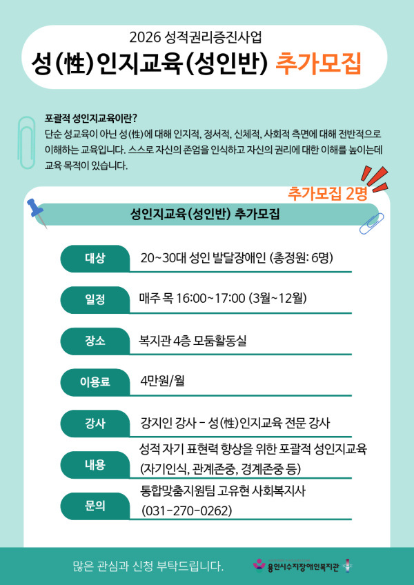 2026년 성인 프로그램 참여자 및 대기자 추가 모집