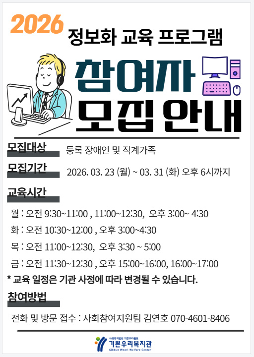 정보화 교육 참여자를 모집합니다.