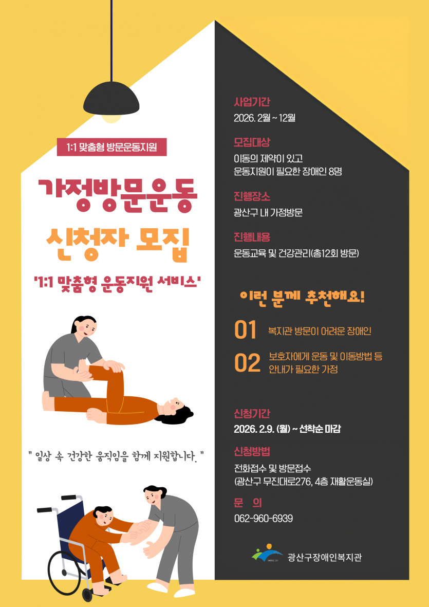 이동의 제약이 있고 운동지원이 필요한 장애인 8명 (외부활동이 어려운 신체기능 제한 대상자 우선)