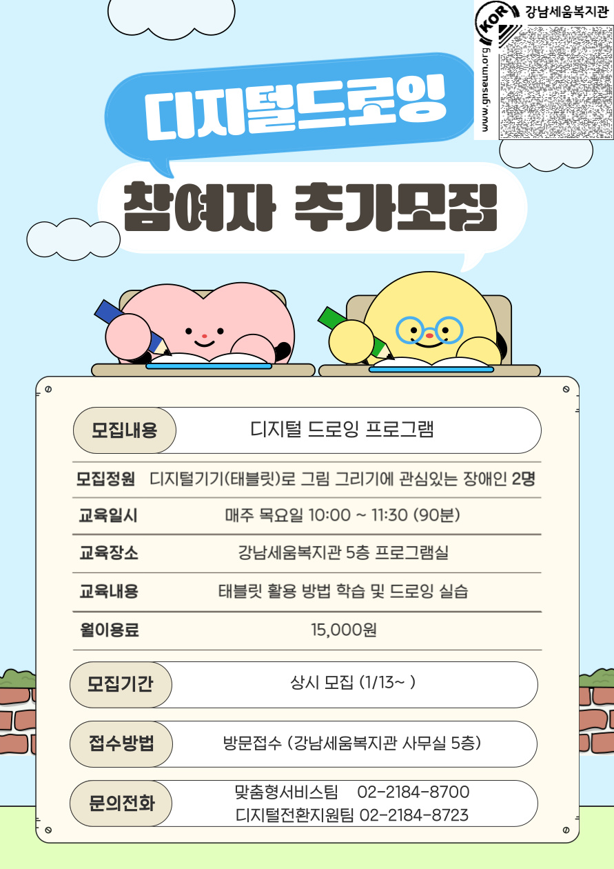 디지털기기(태블릿)로 그림 그리기에 관심있는 장애인 2명