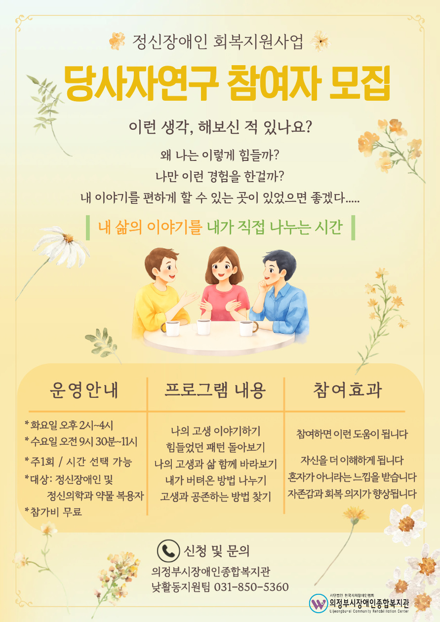 정신장애인 회복지원사업 '당사자연구' 참여자 모집