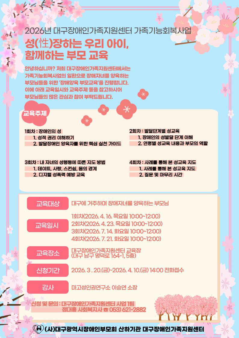 장애인의 성, 발달단계별 성교육, 내 자녀의 성행동에 따른 지도 방법, 사례를 통해 본 성교육 지도 등