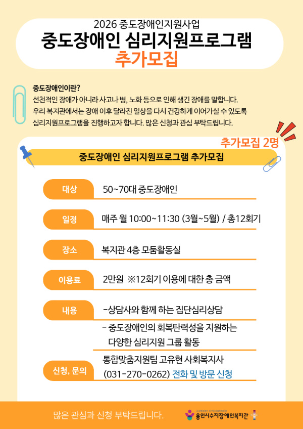 중도장애인심리지원프로그램 추가모집