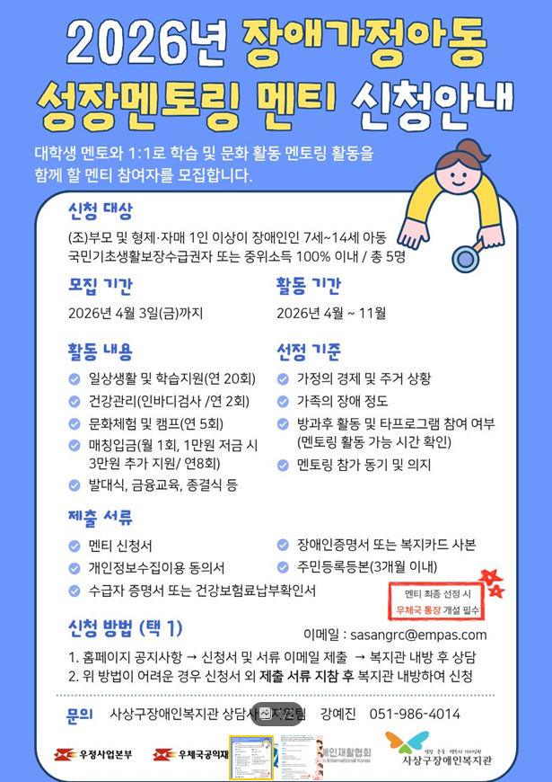 2026년 유관기관 연계 특수학급 아동 대상 프로그램 이용자 모집