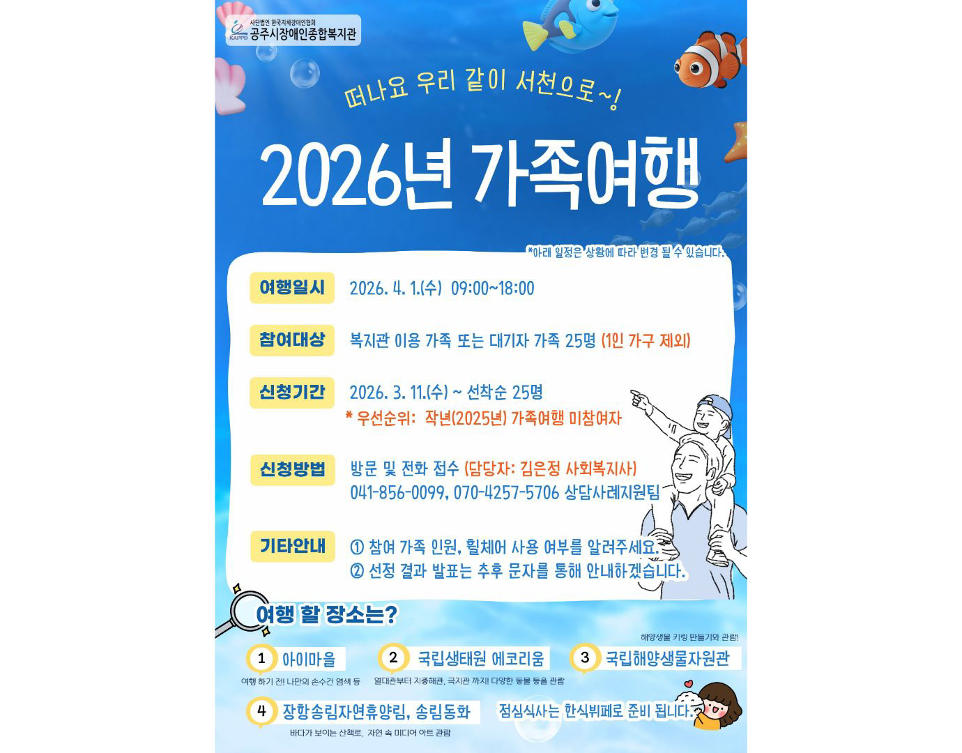 서천에서 진행되는 가족여행 참여자를 모집합니다.