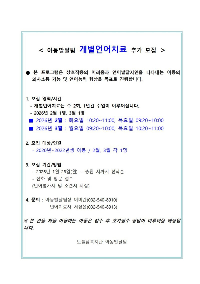 • 2026년 2월 : 화요일 10:20~11:00, 목요일 09:20~10:00• 2026년 3월 : 월요일 09:20~10:00, 목요일 10:20~11:00
