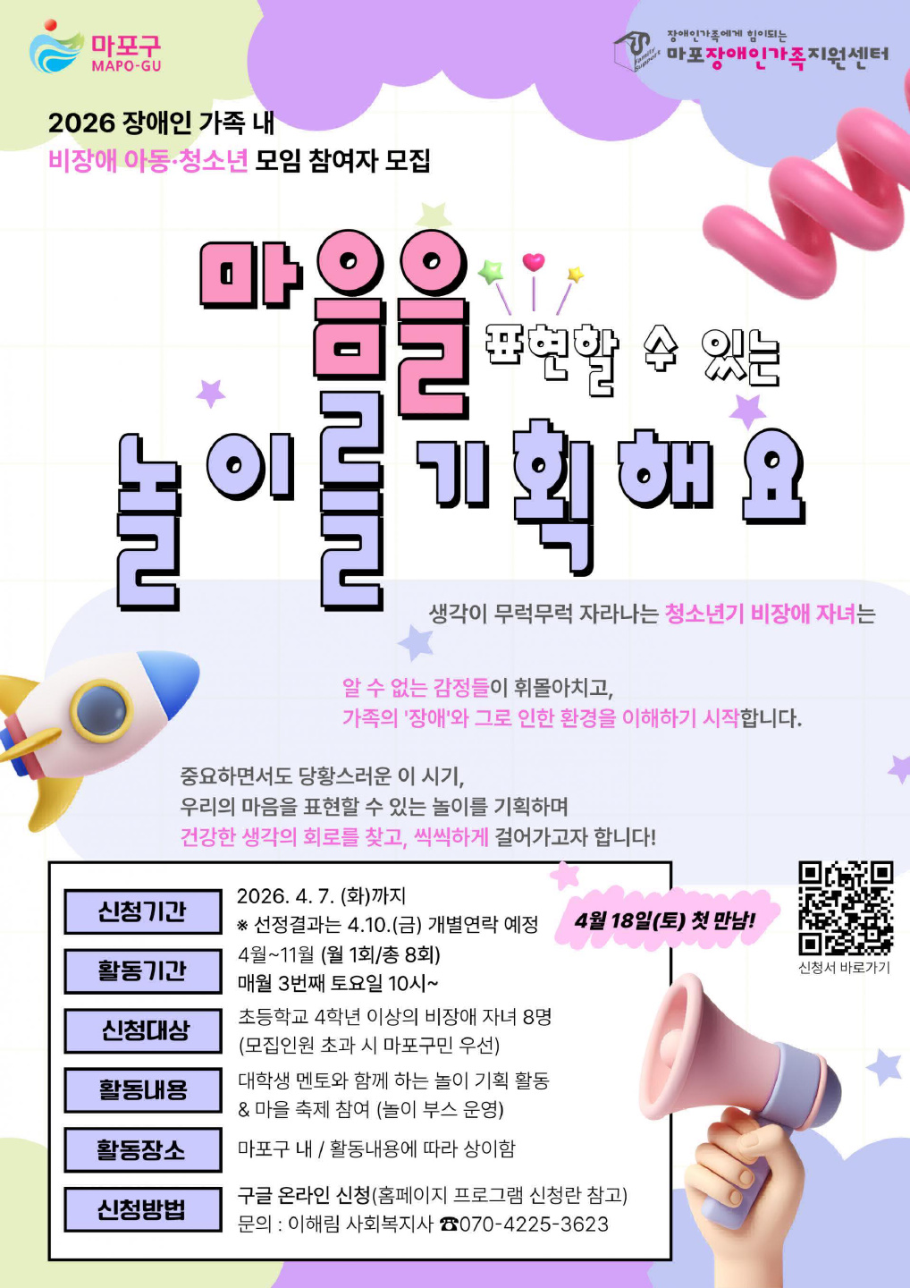 2026 '장애가정아동 성장멘토링' 멘티를 모집합니다!