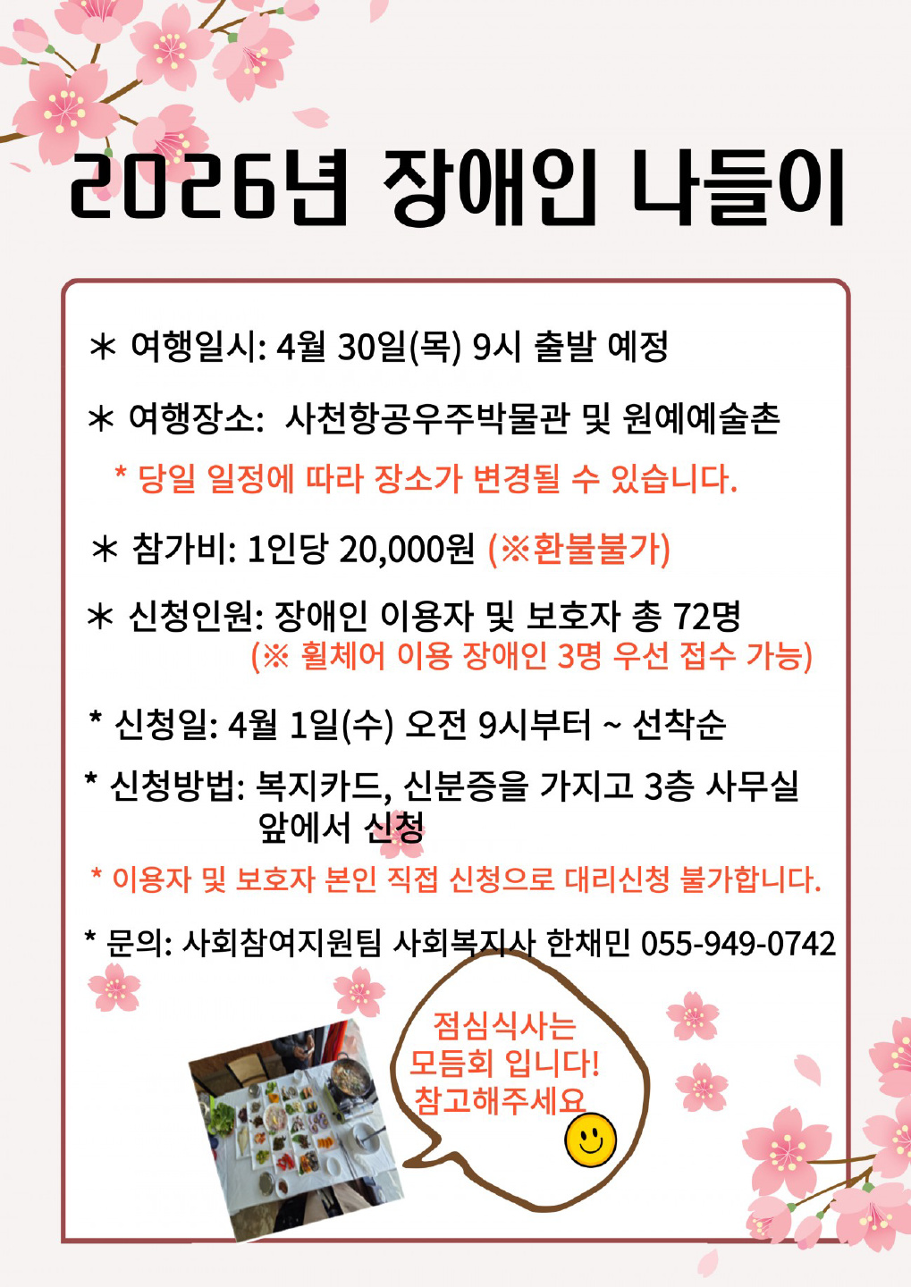 2026년 발달장애인가족휴식지원사업 자율여행 참여자 모집 안내