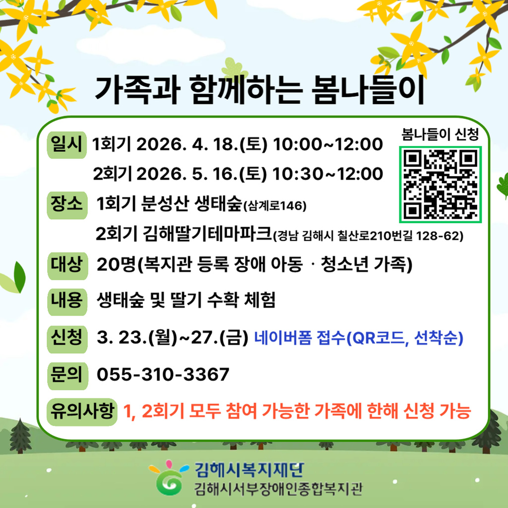 「가족과 함께하는 봄나들이」 참여자 모집 안내