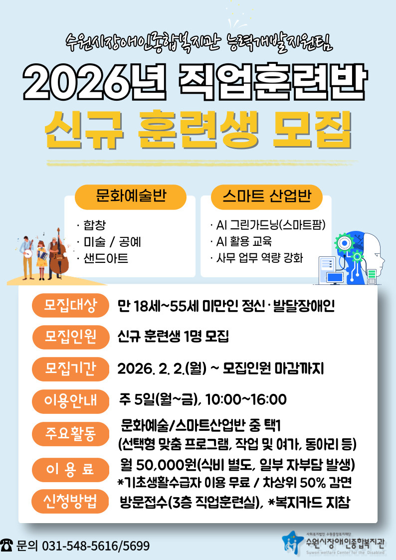 - 신청방법: 방문접수(3층 직업훈련실), 복지카드 지참 필수
