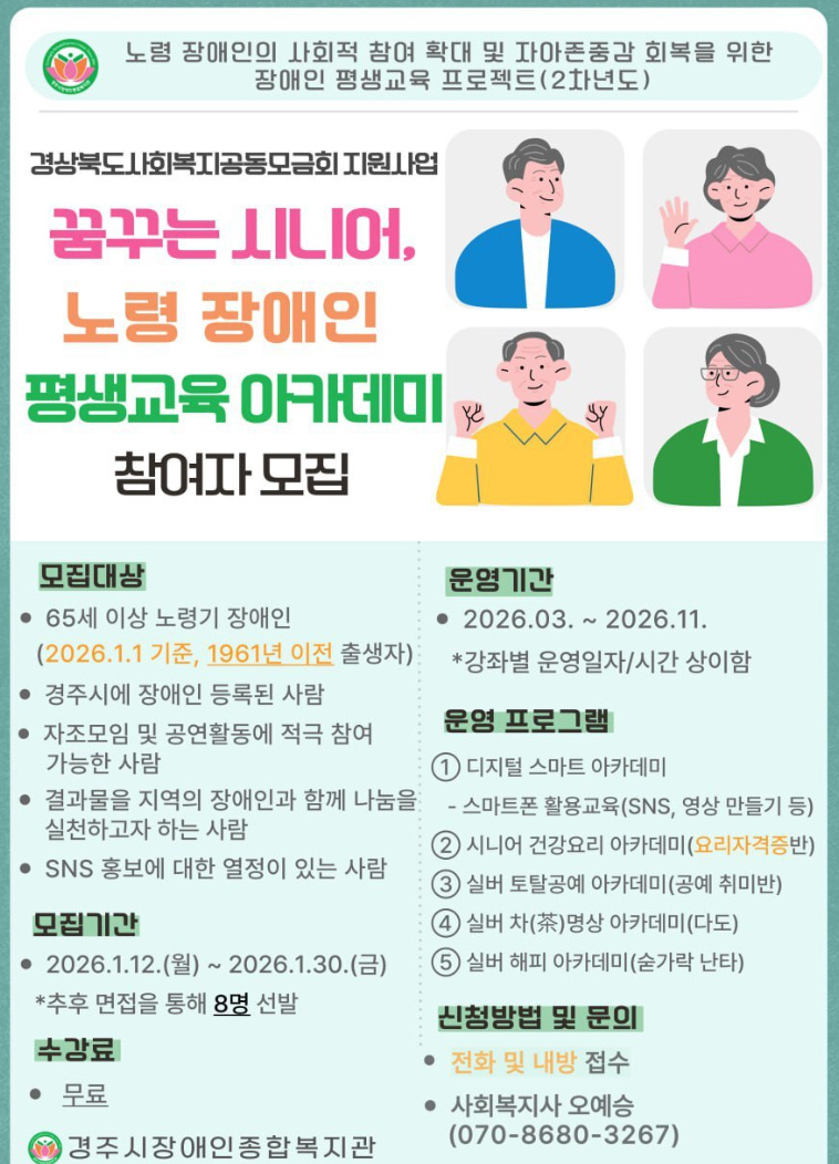 꿈꾸는 시니어, 노령 장애인평생교육 아카데미