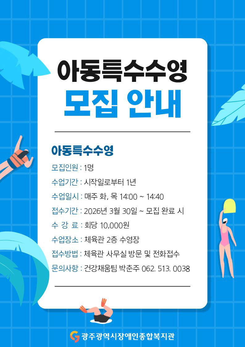 아동특수수영 모집 안내