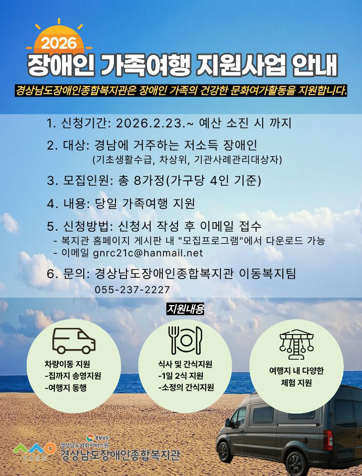 장애인 가족여행 지원사업 안내