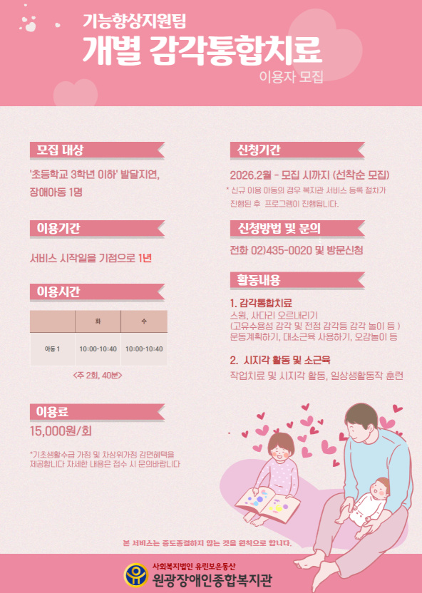 다양한 움직임을 통해 아동의 건강한 정서와 발달에 필요한 심리, 운동, 인지, 사회, 감각, 언어적으로 지원하여 현재의 어려움을 보다 안정된 환경에서 해소하고 그 방법을 찾아가는데 목적을 두고 있습니다.