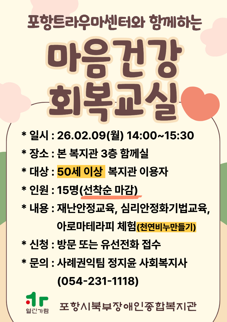 마음건강회복교실 모집