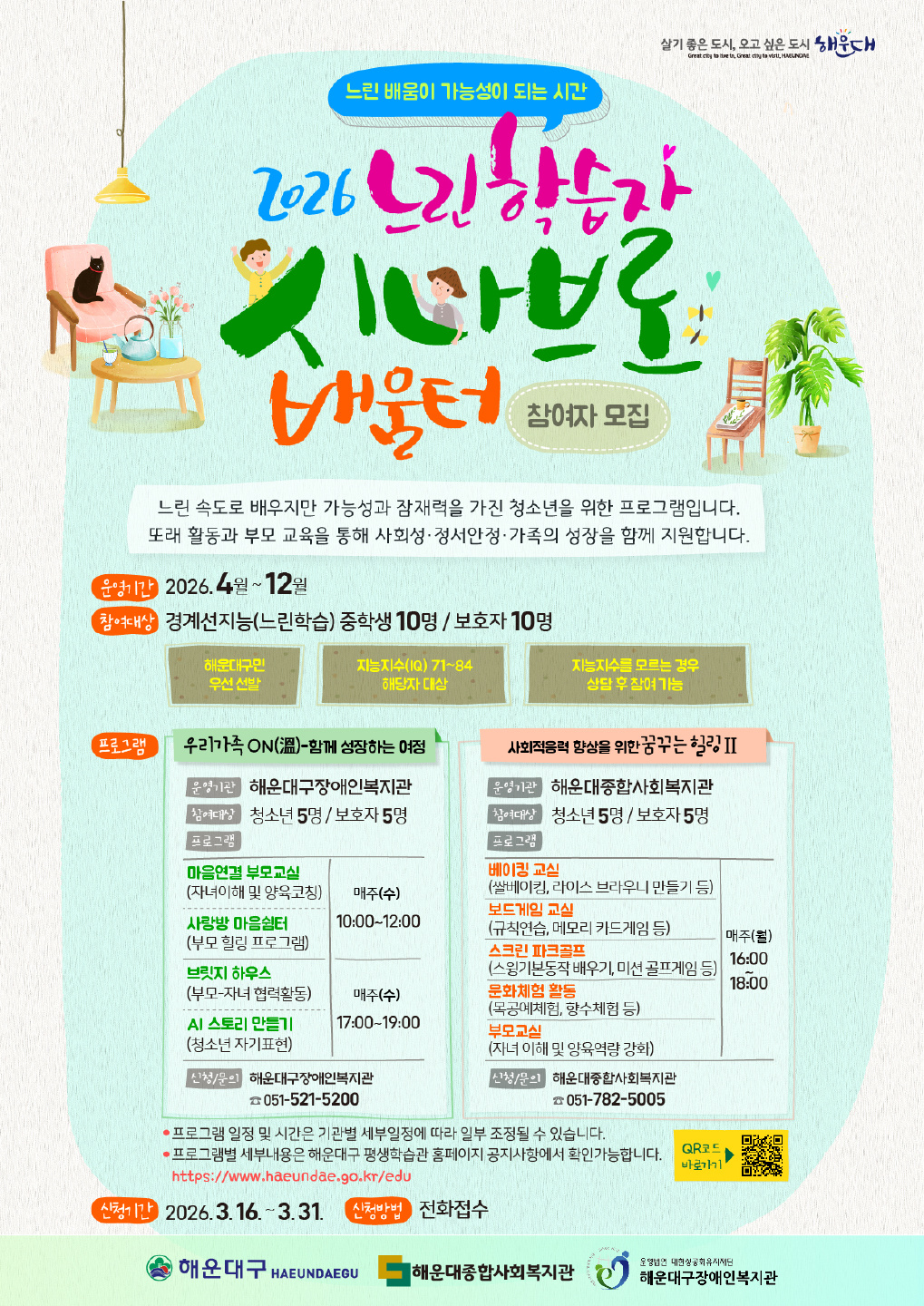![2026년 느린학습청소년가족지원사업[우리가족ON(溫)ː함께하는 성장여정]](https://gwbwlthmhezfxkynvgjp.supabase.co/storage/v1/object/public/admin-contents/curated/1774533256264_edited_1774533254925.jpg)