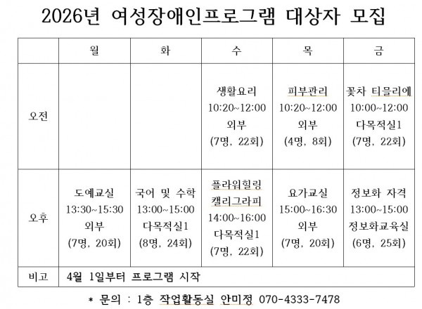 2026년 작업활동 대상자 모집