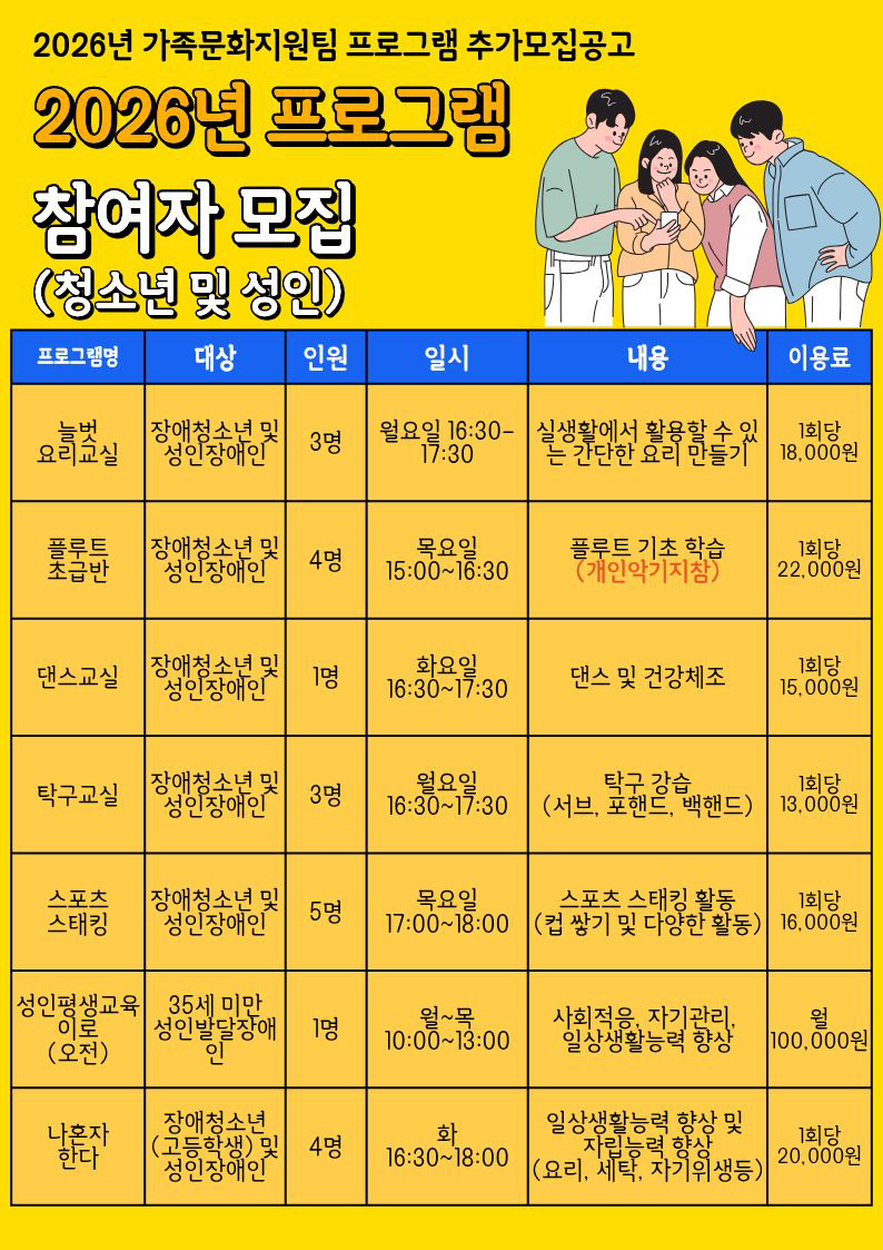 가족문화지원팀 프로그램안내 및 이용자 추가 모집