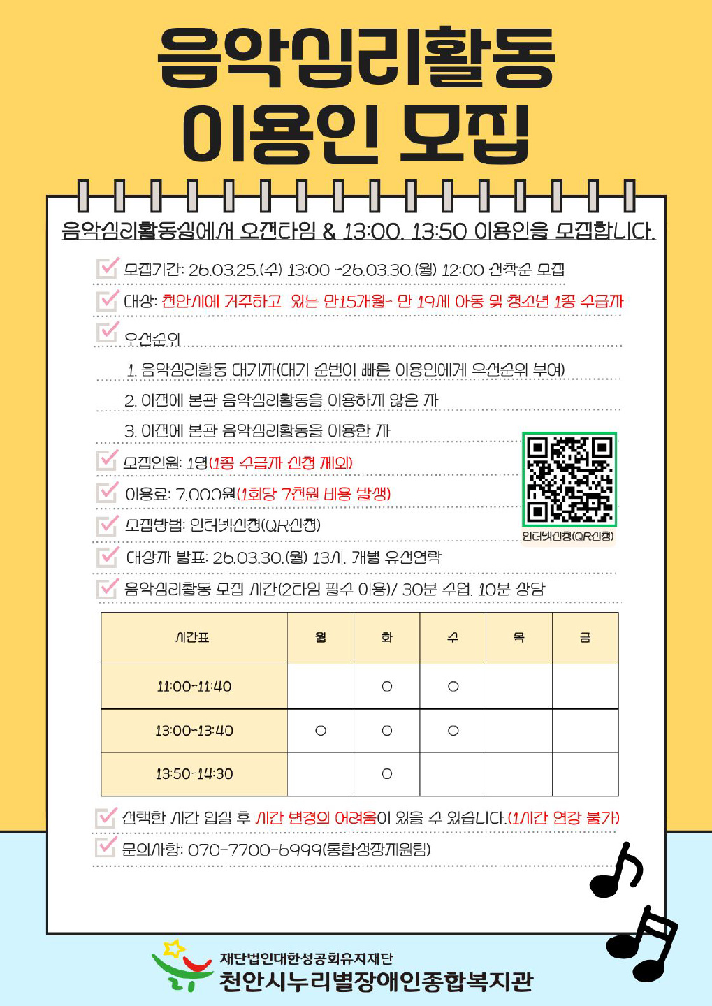 음악심리활동 이용인 모집