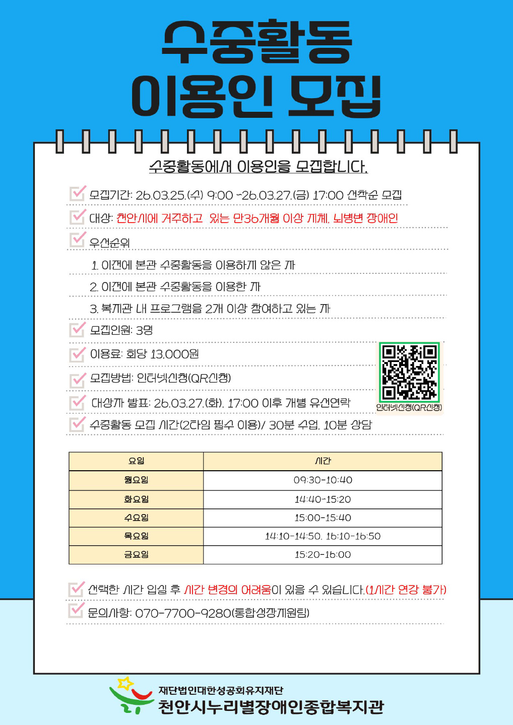 마감임박 천안시누리별장애인종합복지관 활동소식