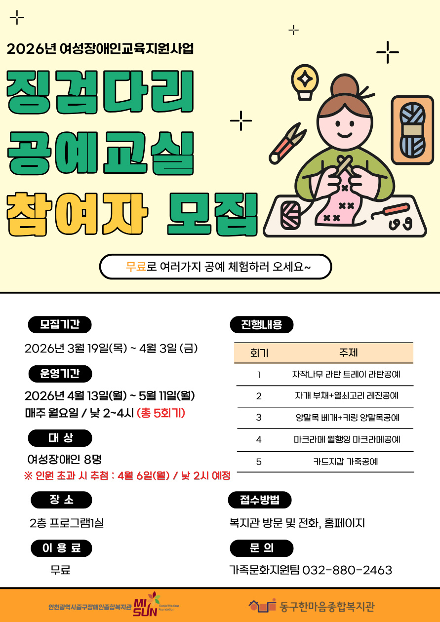 2026년 징검다리 공예교실 참여자 모집을 진행하고 있습니다