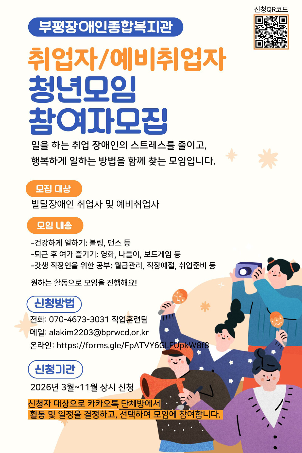 취업자/예비취업자 청년모임 참여자를 모집합니다.