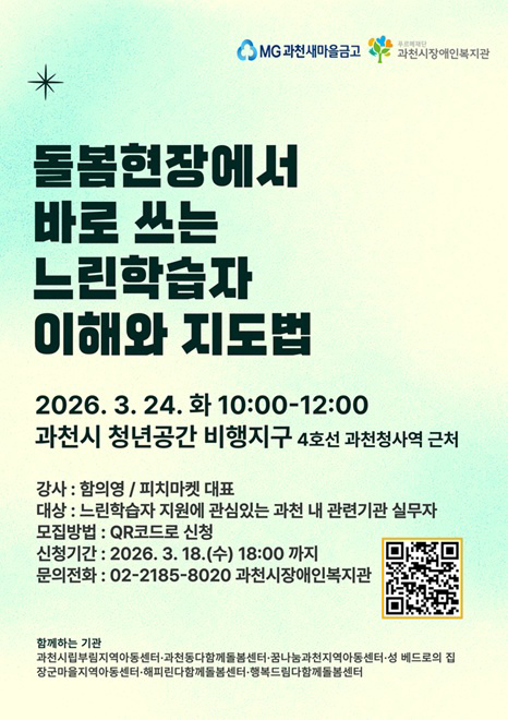 과천새마을금고와 함께 하는 「돌봄현장에서 바로 쓰는 느린학습자 이해와 지도법」교육 모집 _ 실무자 대상 교육