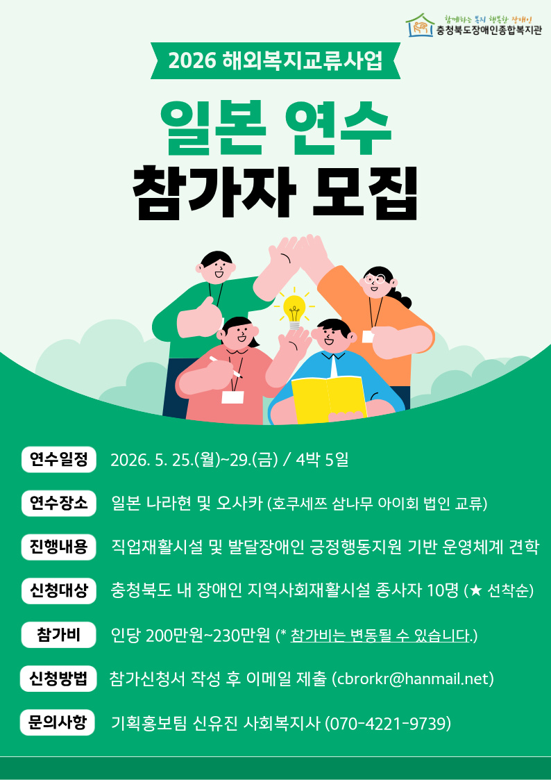 「2026년 해외복지교류사업 일본 연수」가 진행됩니다.