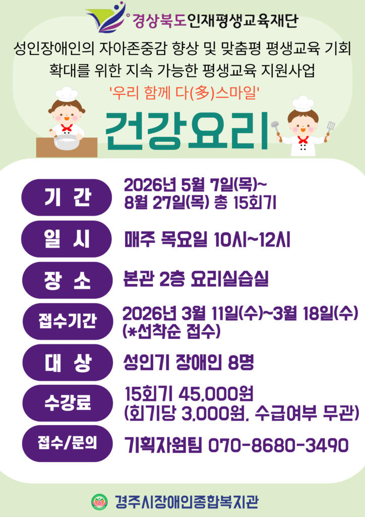 '우리 함께 다(多) 스마일' 건강요리 참여자 모집