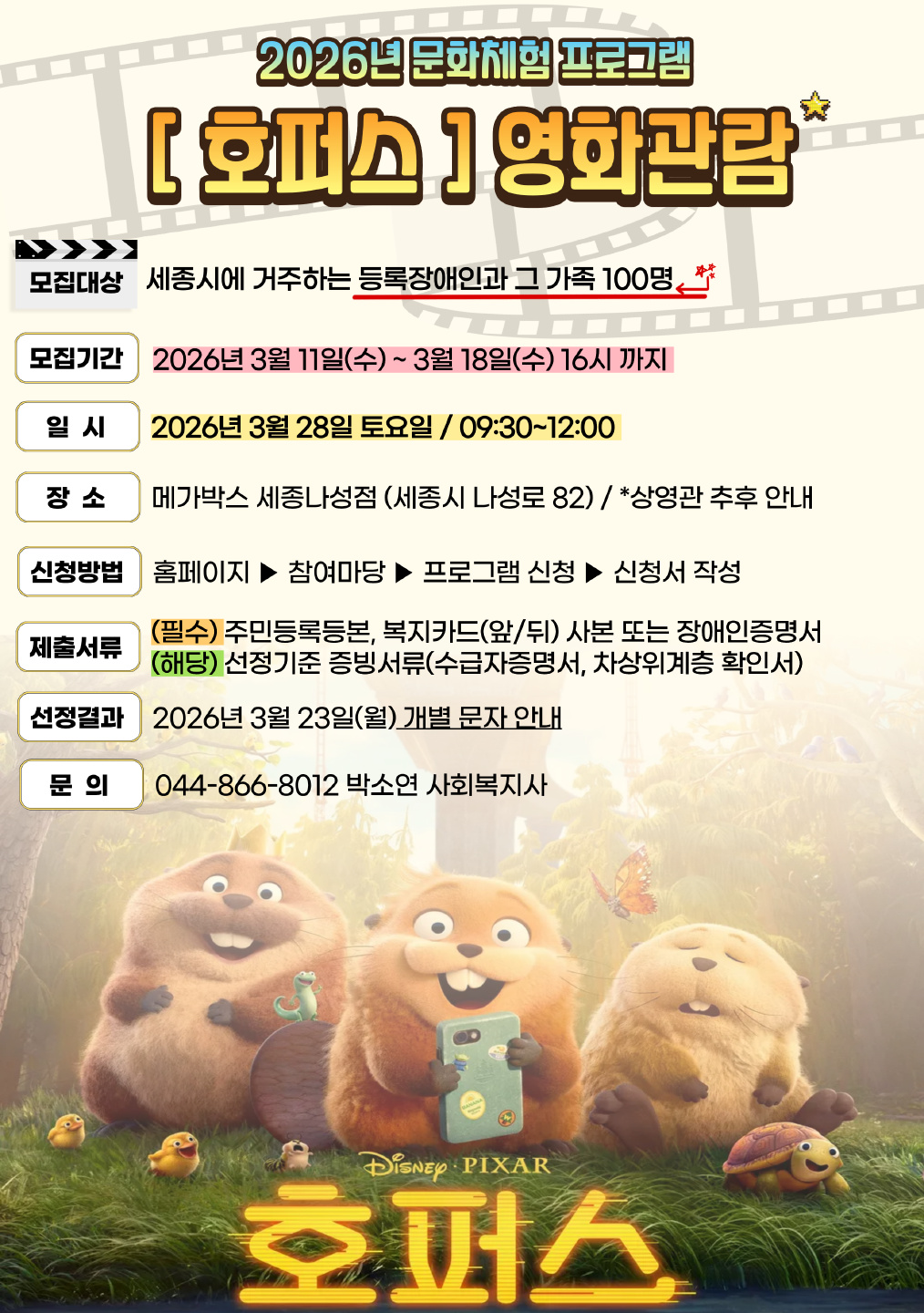 문화체험 프로그램 '영화관람-호퍼스(더빙)' 참여자 모집
