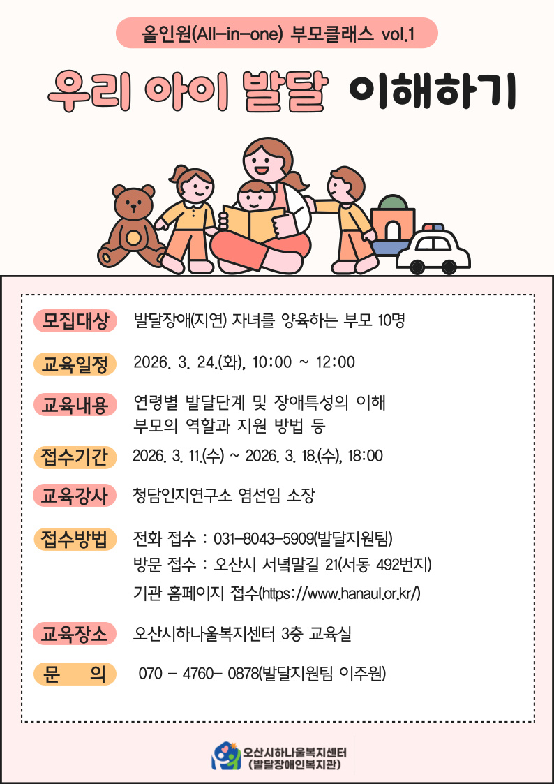 '우리아이 발달 이해하기' 부모교육 참여자 모집안내