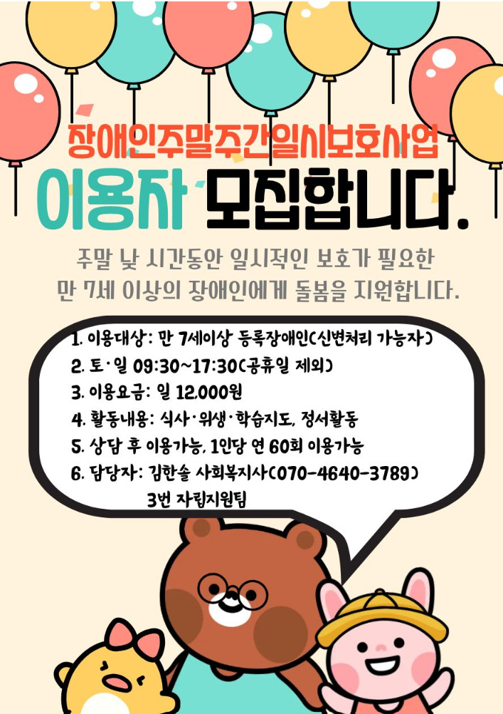 주말주간일시보호사업 이용자 모집