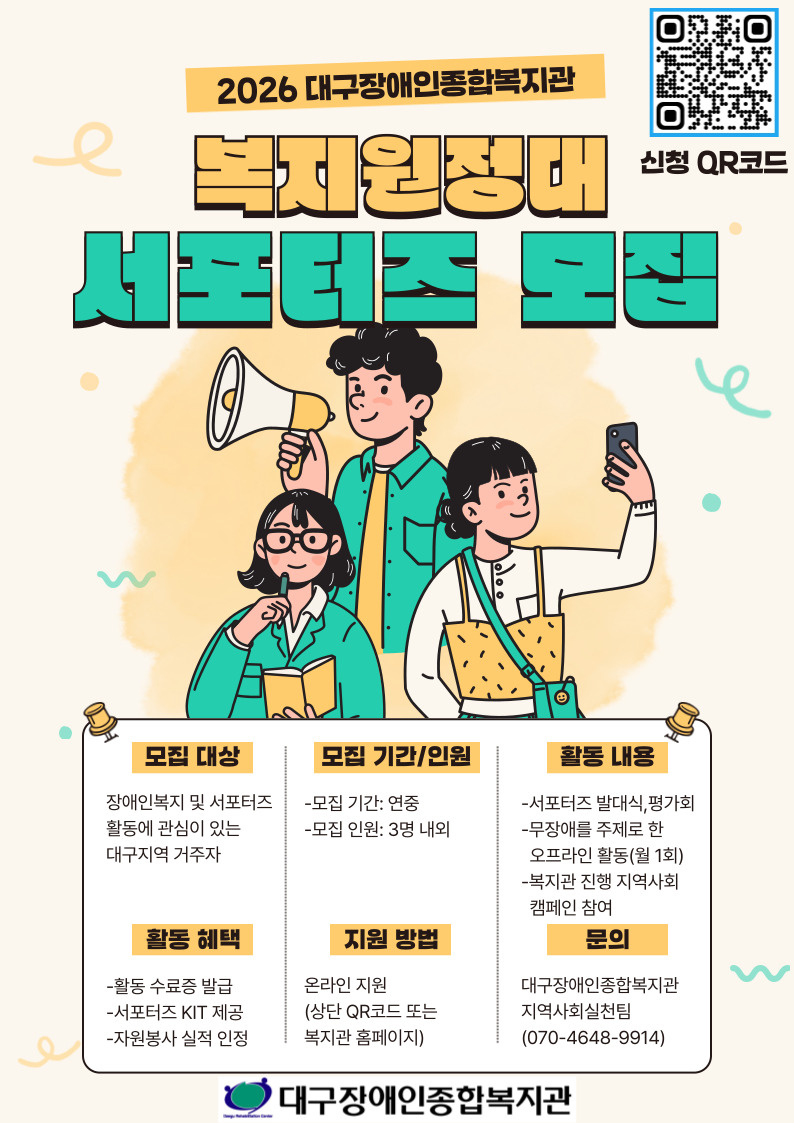 2026년 한 걸음 더 가까이 '복지원정대' 서포터즈 모집안내