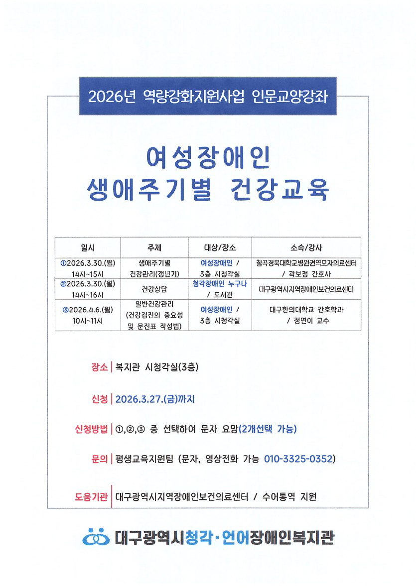 달구벌여성문화대학 봄학기 회원 모집