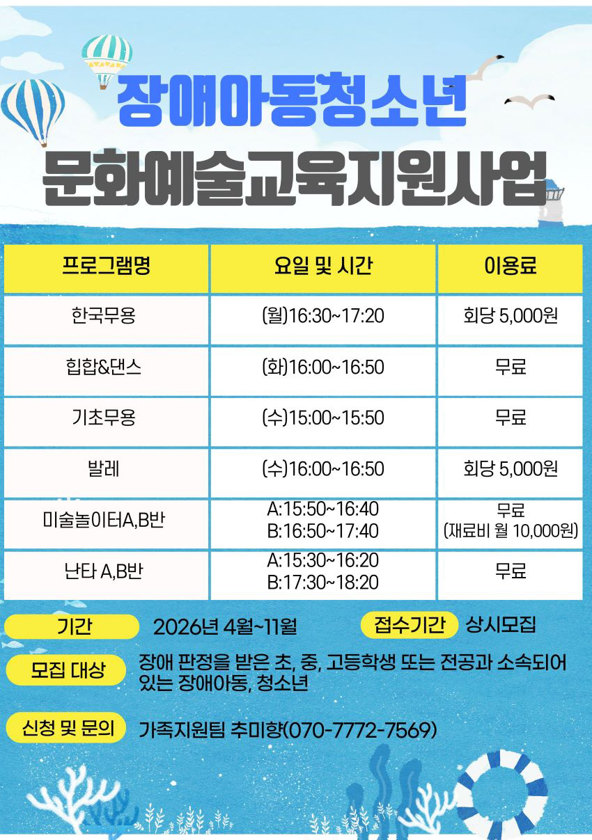 장애아동청소년 문화예술교육지원사업 이용자 모집