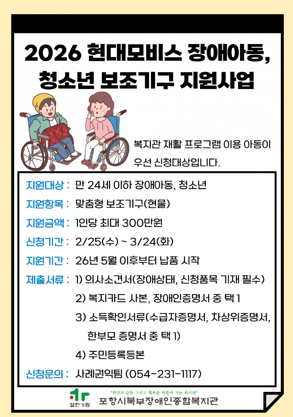 2026 현대모비스 장애아동, 청소년 보조기구 지원사업