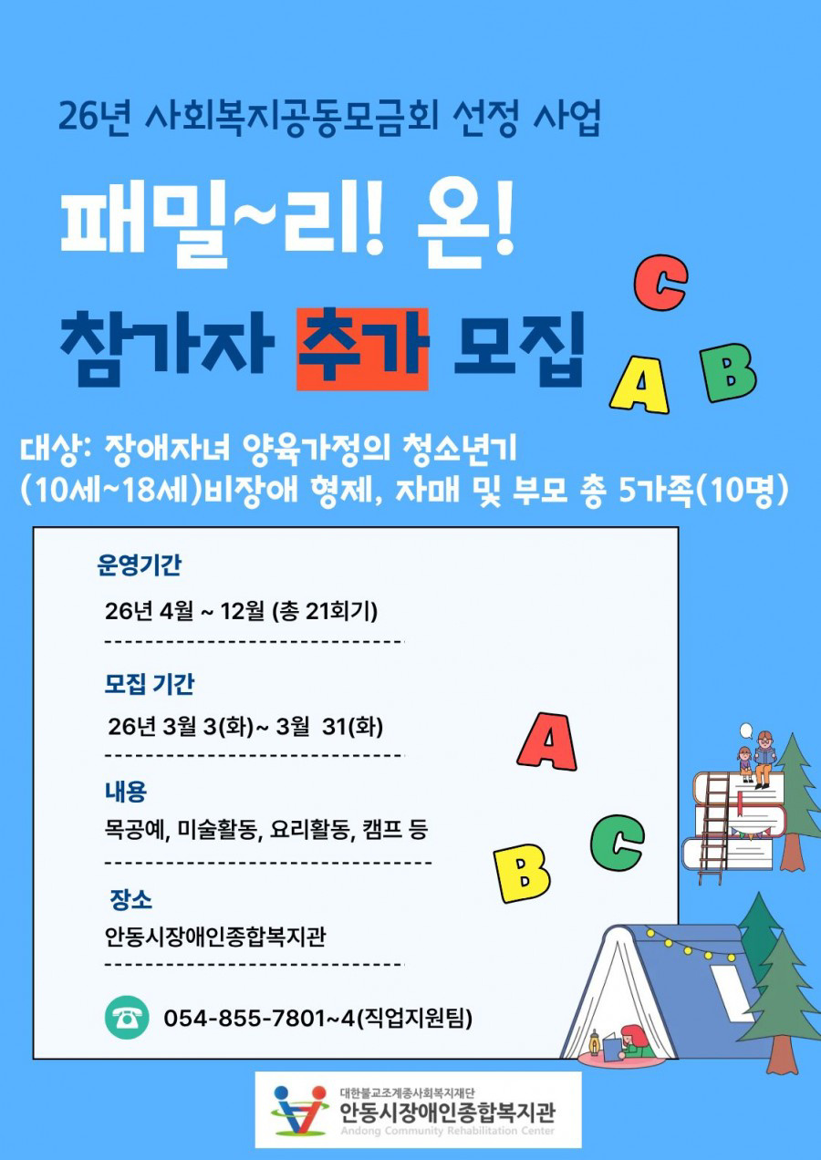 2026년 사회복지공동모금회 선정 사업 "패밀~리!온!" 참가자 추가 모집
