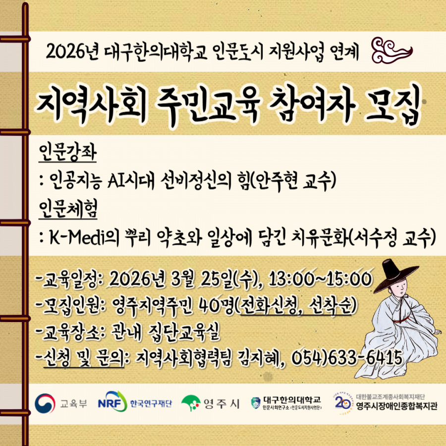 2026년 대구한의대학교 인문도시지원사업 연계 '지역사회 주민교육' 참여자 모집